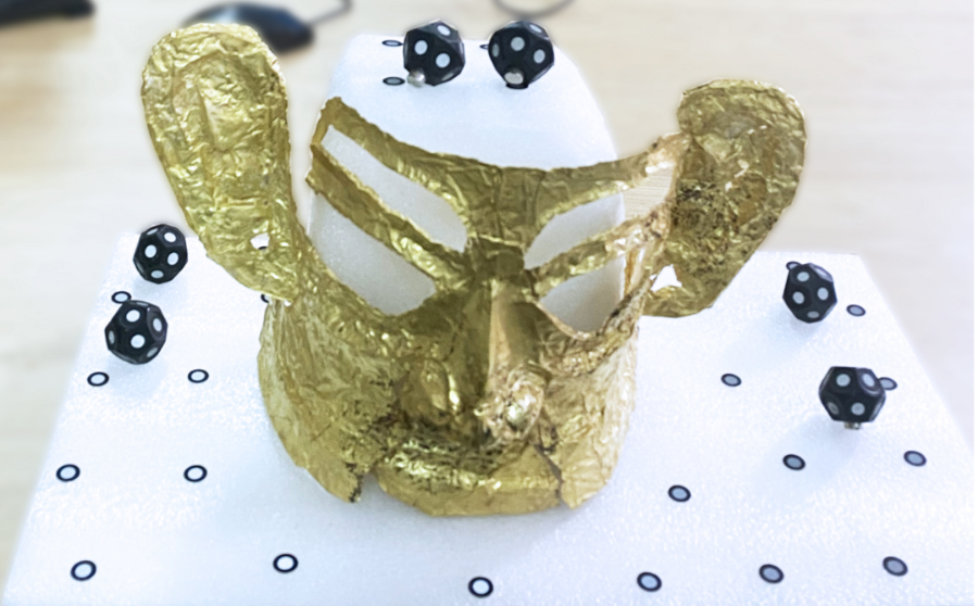 ▲3D打印器物塑膠外殼 圖源:四川省文物考古研究院 ▲金面罩 | 烈火熔金 神圣威嚴